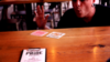 FACE-UP into the face-down deck. The signed card is left protruding, face-up from the deck. The cellophane is now pulled a couple of inches off the card box.