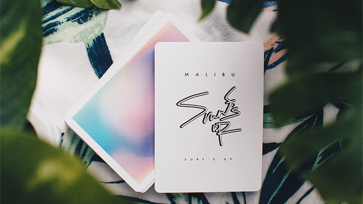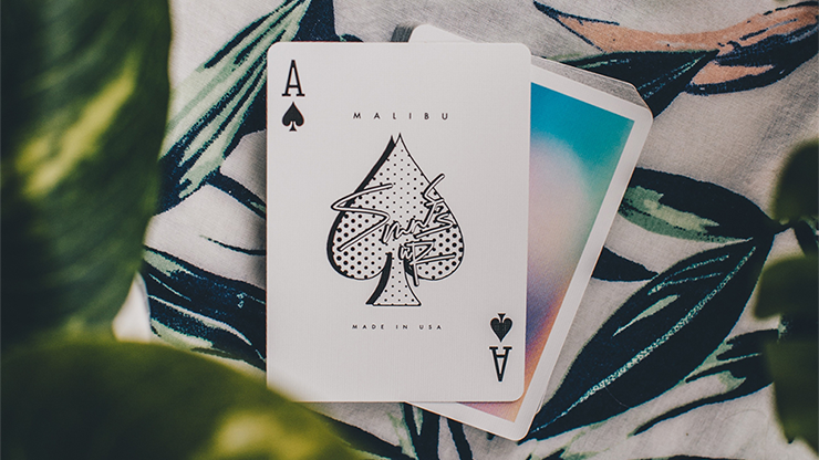 Malibu Playing Cards is here in all its beauty. It's got "Surf's Up!" on the Ace of Spades, the Jokers, and the seal. The backs engage the viewer's eyes with their gorgeous beach-like colors. When fanned, the backs are even more magnificent - ahhh, the Malibu life!
