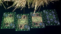 The tuck case design was created to make the fireflies really stand out. We incorporated a pitch-black backdrop and used neon greens and yellows to spot the stunning glow effect. In the center, we decided to incorporate the classic spade with a silver accent, which goes nicely with the overall look of the deck.
