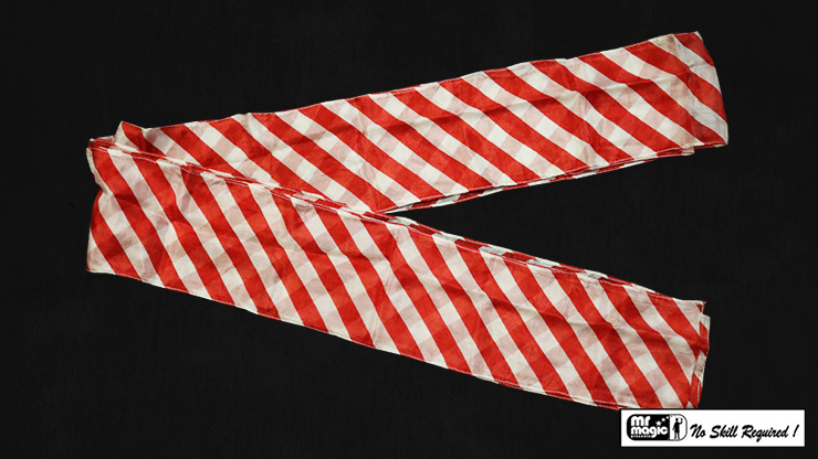 A beautiful streamer made of fine silk. This can be used in many ways, including effects in which two hankies appear to blend together and become one. This creates a wonderful transformation which never fails to surprise audiences. This particular streamer is 6 inches by 18 feet, and is decorated in red and white stripes.