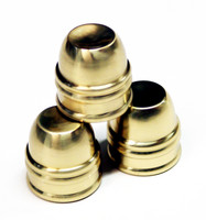 3 solid brass cups. Dimensions: 2.7 oz. (each), height 1.25", mouth 1.25" in diameter. 4 rubber peas.