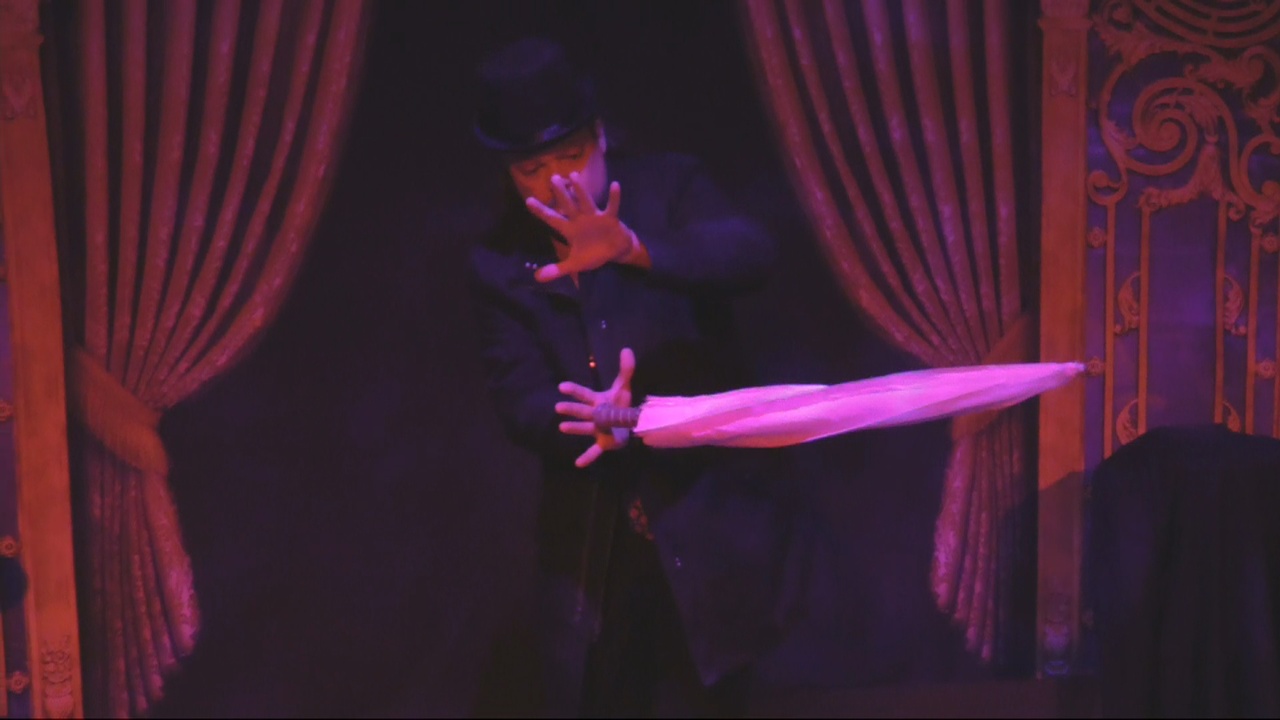 The Enchanted Cane: An umbrella floats and defies gravity at your command. It's an updated version of the floating cane to tell a rainy-day story with an elusive umbrella.