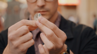 With just a little imagination, the performer defies physics and visually pushes the coin through the ring directly in front of the spectators' faces!