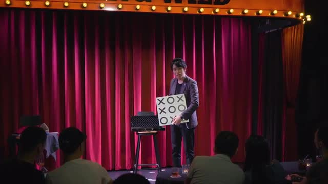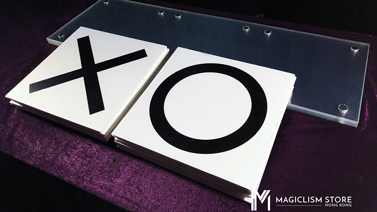 Each player takes turns drawing X's and O's on a 3-by-3 grid. After completing the game, the magician reveals a surprise ending!