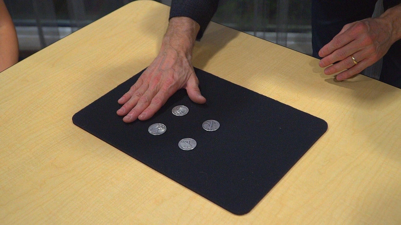 This is a super easy one handed matrix that is a lot of fun to do. If you have 4 matching coins and