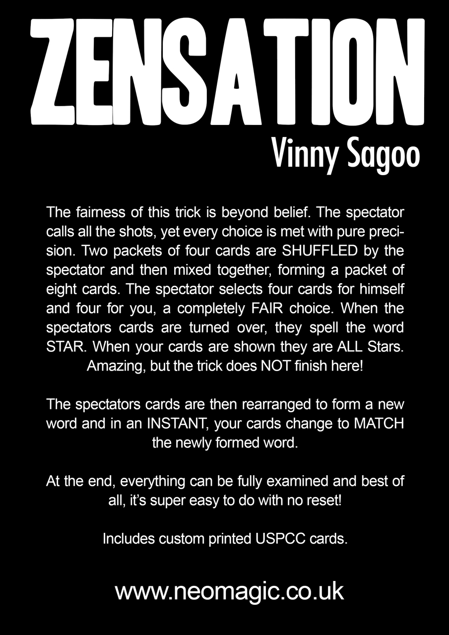 The spectator's cards are then rearranged to form a new word and in an INSTANT, your cards MATCH the newly formed word!