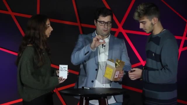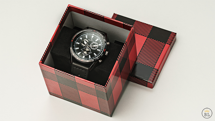 The magician then walks over to the table and picks up the mysterious package.The package is opened, and from it the spectator removes a red gift box tied with a golden bow. The spectator then unties the bow, removes the lid and finds inside a beautiful wrist watch. The watch is cleanly placed on the spectators palm.