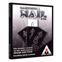 The "Cartoon Nail" is the pocket version of the well known "hidden nail under the cup" (Smash and Stab) trick which has many variations.