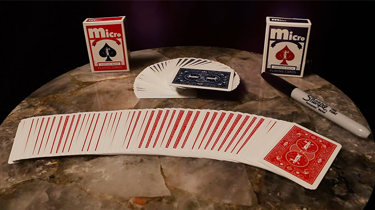 Micro is a specially printed gimmick that allows you to visually and instantly change a full-size playing card into a mini card which can be shown on both sides. The gimmick also allows for a number of other magical effects such as shrinking an entire deck of cards into a mini deck of cards. The effect comes with a video tutorial clearly explaining all of the ins and outs of this unique device. The gimmick is re-usable, easily and quickly reset, and it allows you to perform incredibly visual shrinking card routines that eliminate the need for complicated sleight of hand.