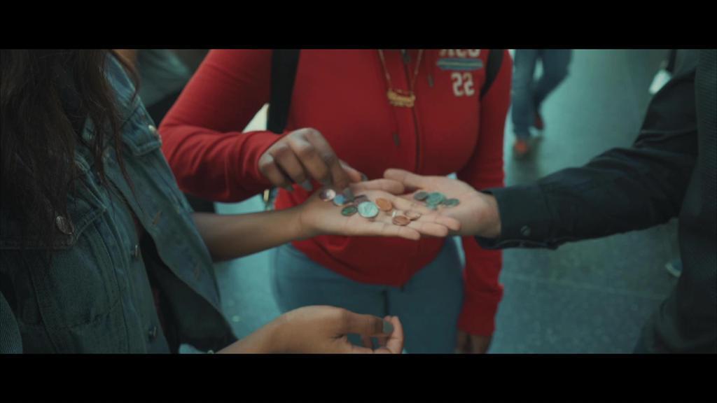 pocket pull out 5he change and ....pull out the pocket to show its empty. And when they count the