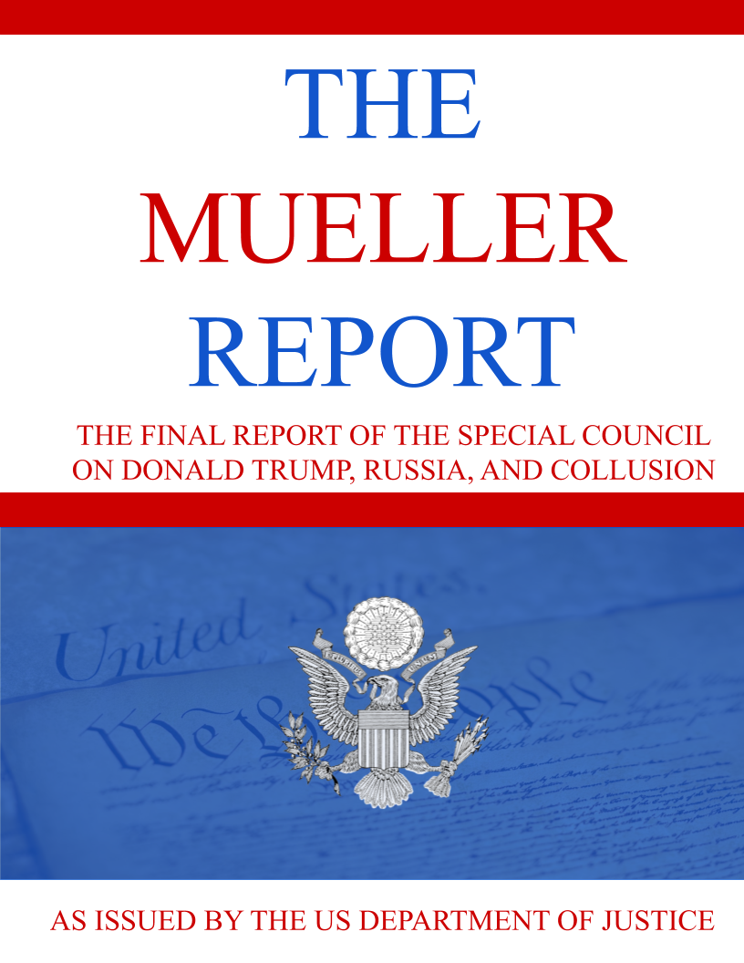 This is a coloring book style, flip book with a cover depicting “The Mueller Report.”