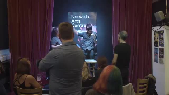 spectator's hands) to cover your eyes. You can even go crazy and wrap your head with bandages, put