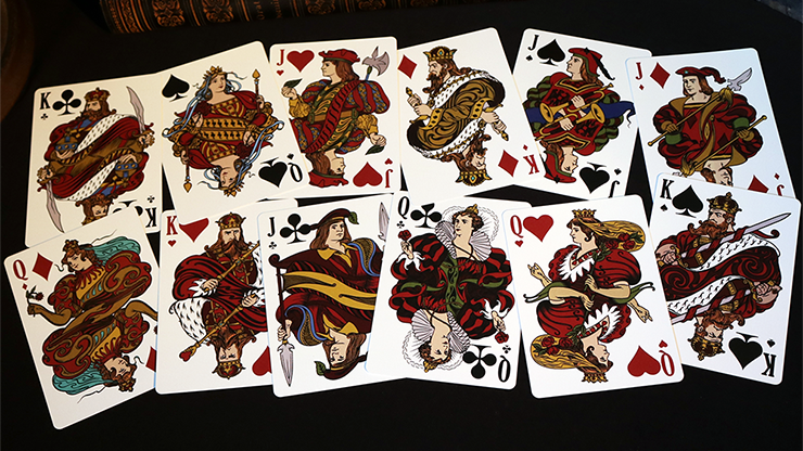 An inspiration for this deck is one of the first decks that made me originally fall in love with playing card design. Titled the "New Era No. 46," it symbolized a new era of beautiful playing card design heading into the 20th century. I have long wanted to use the New Era court set as inspiration and create my own "engraving" style versions of them, and I felt this was the project to do it. The interesting thing about the New Era No. 46 deck is that it was published around the same time that the actual printing presses that will be used for the Intaglio project were created. For me, this project, in a way, is a new era. I finally got to pursue the art style of engraving to its physical form.