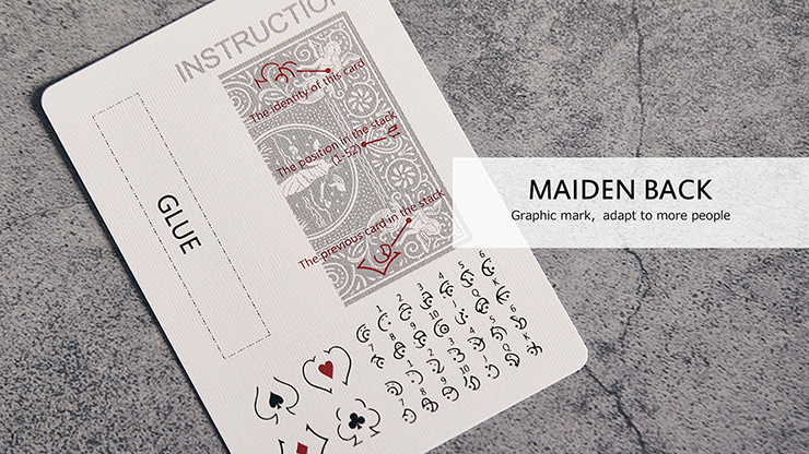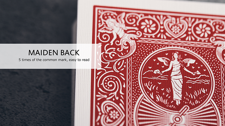 Here's a brilliant, marked deck utilizing the Bicycle Maiden Back, which is very classic and common in cards. It is made and printed by USPCC, and uses the classical Bicycle paper.