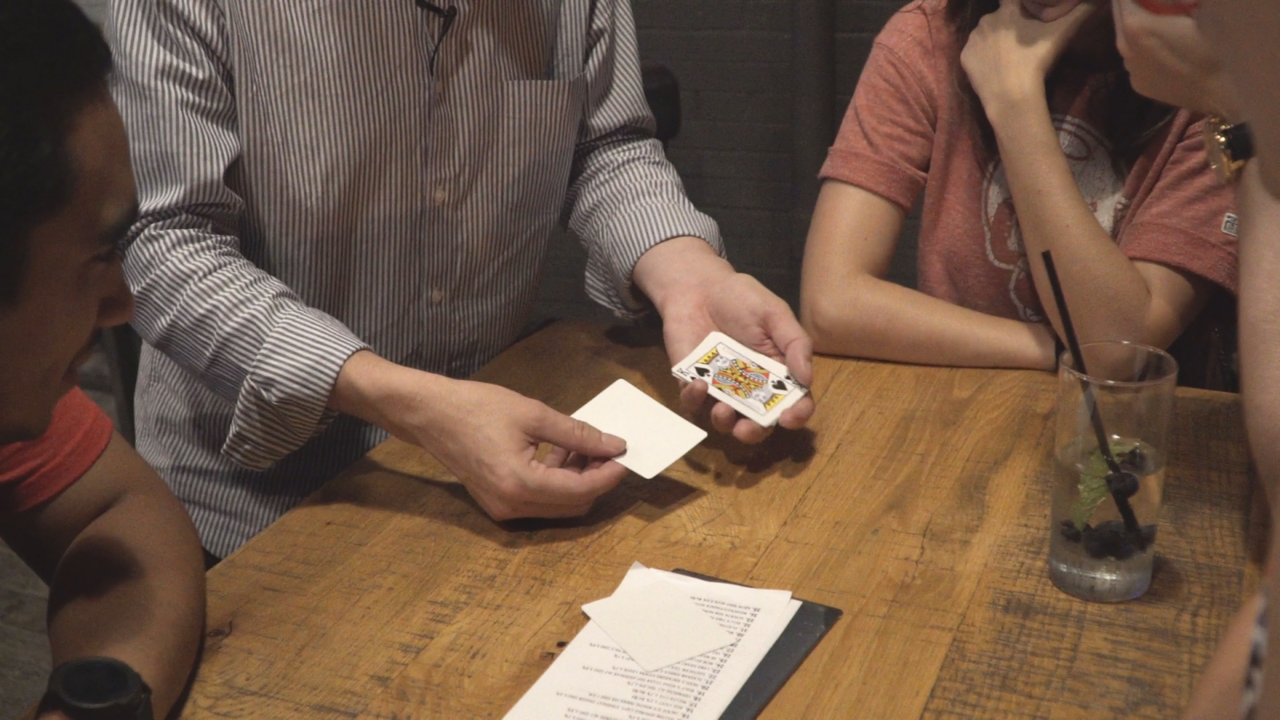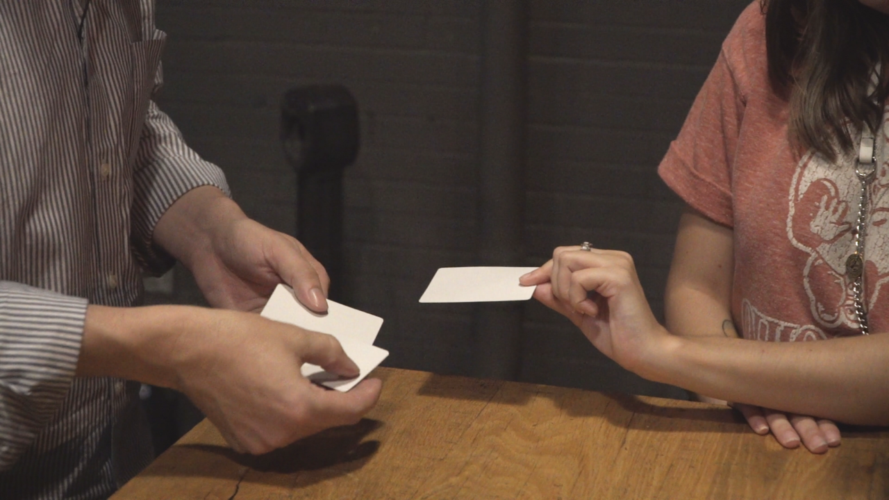 Here’s what happens: Three blank cards and one money card are introduced to the audience. After demonstrating the simple game of find the money card one of the blank cards is openly and fairly placed into the performer's pocket. The money card is mixed into the remaining blank cards and what follows is a series of increasingly impossible transpositions leading to the money card vanishing altogether and reappearing in the performer’s pocket.