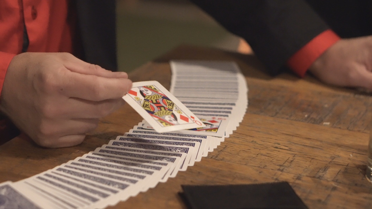 The magician asks a spectator at the table what their birthday is. Using numerology a shuffled deck is dealt down to one card. That card is shown to have the words, “Happy Birthday” written on the back. Not only that, but it’s the only red card in an all blue-backed deck. The final kicker is that the matching card is found on the back of a calendar that has been in plain view the whole time.