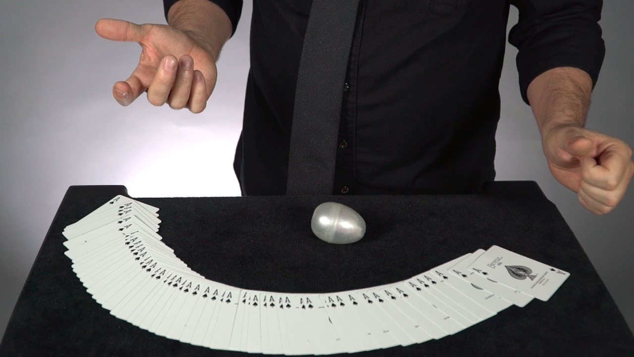 When it comes to misdirection, Tommy Wonder was a master, and this humorous routine stands as a perfect example. What begins as a simple (yet strong) card trick, soon turns surprisingly off-beat as a plastic egg suddenly appears on the table next to the spectator and far away from the performer. It’s a truly jaw-dropping moment perfectly orchestrated to amaze and amuse! Not only does the egg seem to appear on its own, it also contains the spectator’s chosen card, and the rest of the deck changes to all Ace of Spades! This trick is strong, and memorable, enough to stand on its own, and you’ll love the misdirection technique.