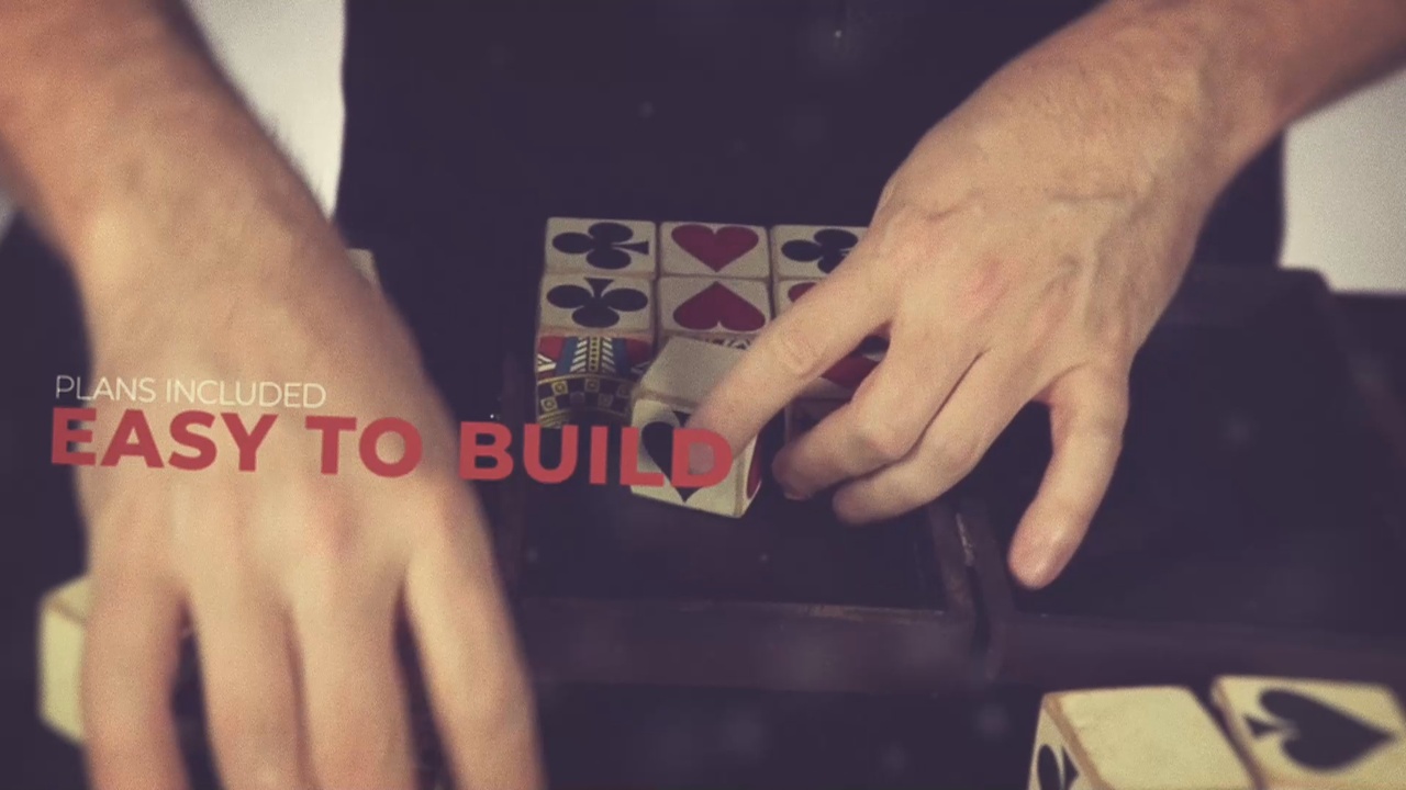 The final lesson features what appears to be an antique game of some sorts… a box filled with blocks that have various card pips on each of their sides. It’s demonstrated that the blocks can be arranged to form a picture of any card. Then, the box is closed and set aside with the blocks in a random order. A card is chosen, and… when the box is opened… the blocks have re-arranged themselves to match the card! In this new version of the trick, everything can be examined as there is no gimmick involved!