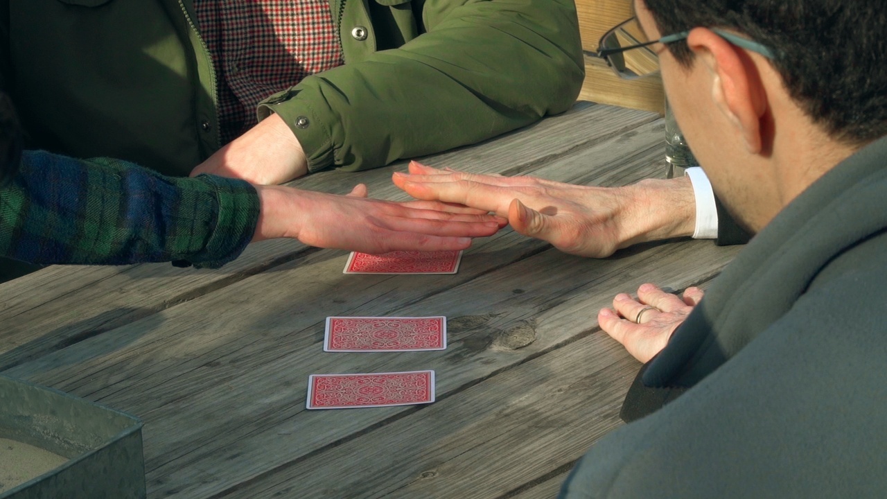 A spectator can shuffle a borrowed deck. They look at a card from the center of the deck and replace it. The deck is cut, and then shuffled. The audience then removes a few cards from the deck at random, and the magician is able to feel the energy left on the card by the spectator. The magician directly, and with no false moves, narrows everything down to one card and one card only. That turns out to be the selected card.