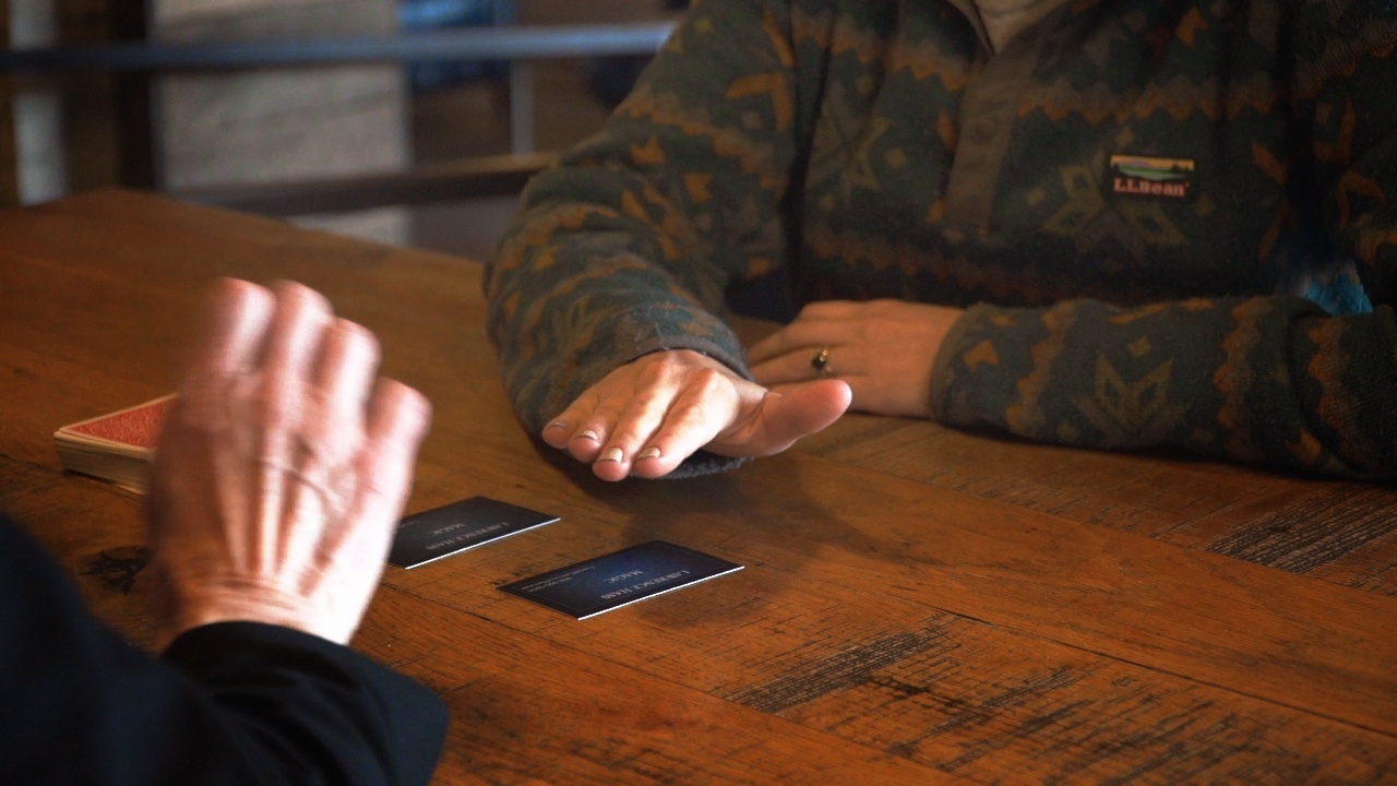 wife who is onto all of my tricks, pinky breaks, false cuts, double lifts, on and on. This totally