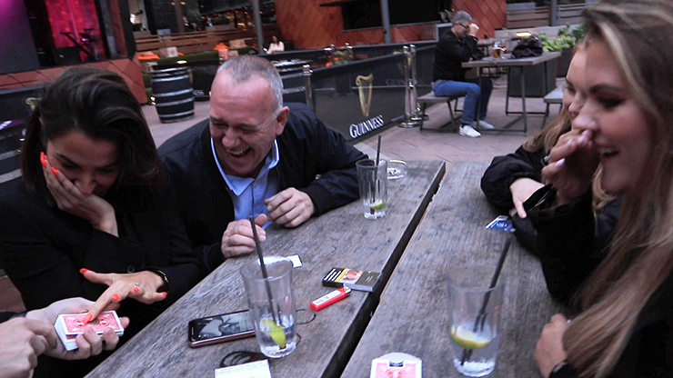 The magician counts down 3, 2, 1 and suddenly the gap VISIBLY MELTS away leaving a neatly squared deck of cards.