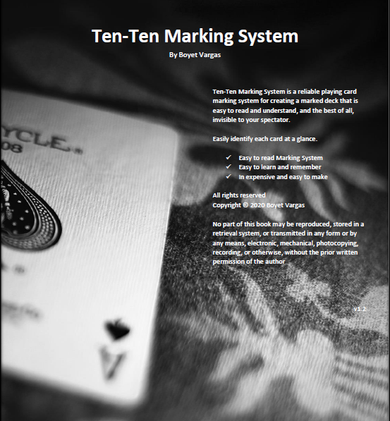 Ten-Ten Marking System is a reliable playing card marking system for creating a marked deck that is easy to read and understand, and the best of all, invisible to your spectator.