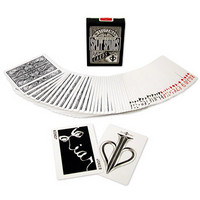 The Split Spade represents David Blaines logo and is featured in a brilliant back design created by M. Stutzman. The cards feature unique design details throughout including the DB Split Spade Logo on the ace of spades, a caricature of David on the face of the King of Spades, the now famous liar optical illusion, etc. The cards are printed for David by the United States Playing Card Company to his very strict standards in high quality Tally-Ho card stock with Linoid finish. The cards handle beautifully and are used by David in his daily performances.