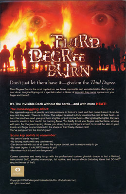 Third Degree Burn is the most mysterious, no force, impossible and versatile blister effect you've ever done. Imagine flipping-out a spectator when a blister of any card they name appears on your finger and thumb!
