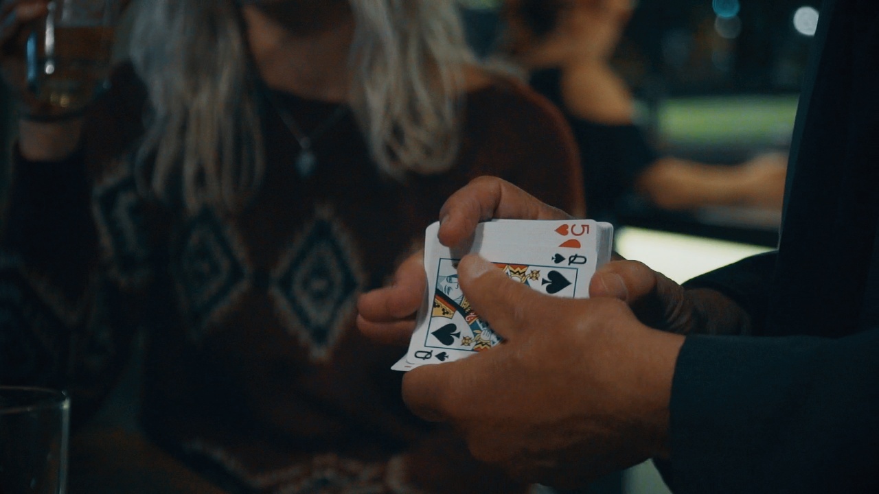 a punch with no setup and any deck of cards. While there is a step missing in the promo and people