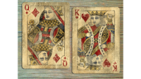 The court cards are aged in a standard manner, and bare the worn-out look from constant usage.