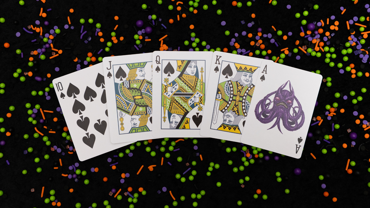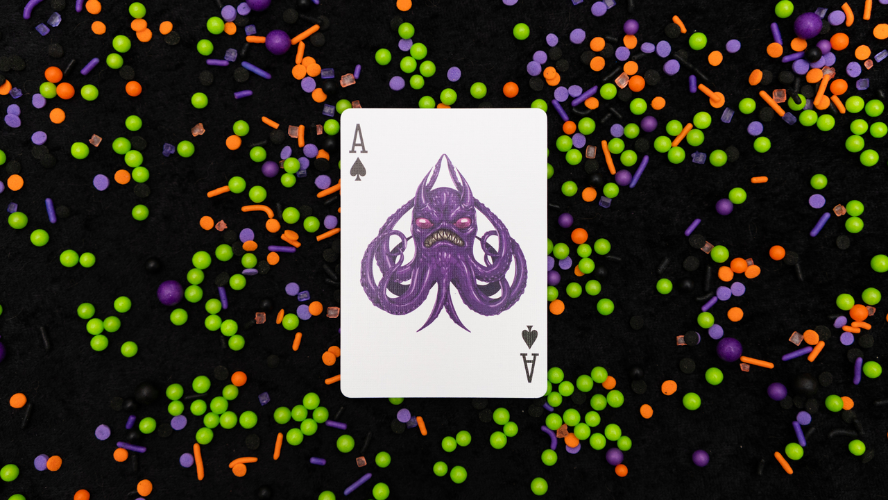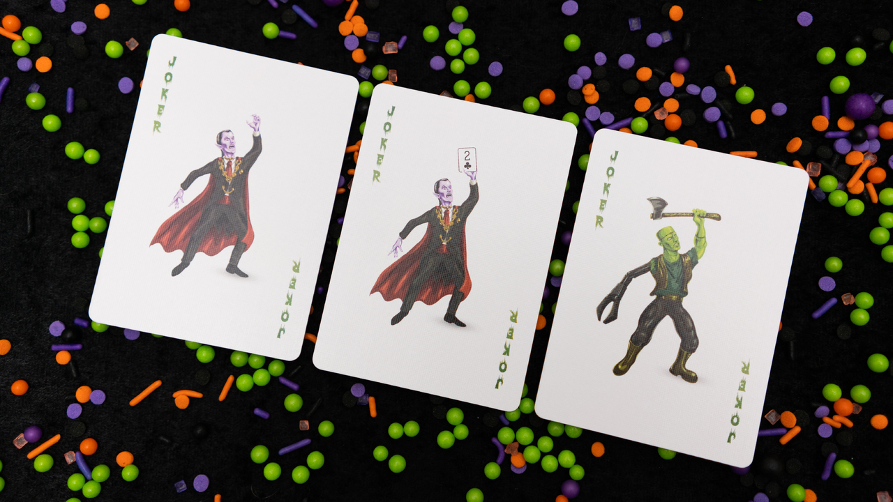 Printed by USPCC, the cards use a Classic stock with ghoulishly great embossed finish. They are traditionally cut for perfect handling, shuffling, and fanning for all of your Halloween tricks & treats!