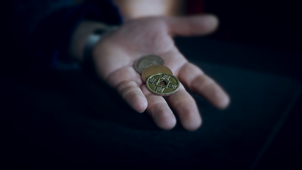 In this powerhouse coin routine, the magician introduces a brass coin with a hole in it, a solid copper coin, and an American half-dollar. First, the brass and copper coin change places with the half dollar in the magician’s hands. Then they transpose places between the hands of the audience member and the spectator. When the magician tries to put the half dollar away it jumps back into their closed fist only for the brass and copper coins to vanish. For the finale, the magician vanishes the half dollar right in front of the audience’s eyes so cleanly they will be wondering if they actually saw real magic.