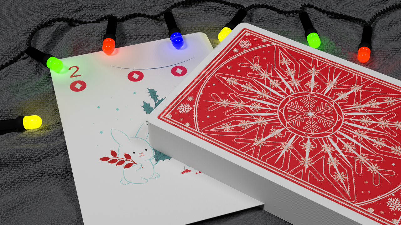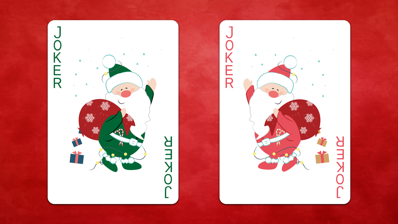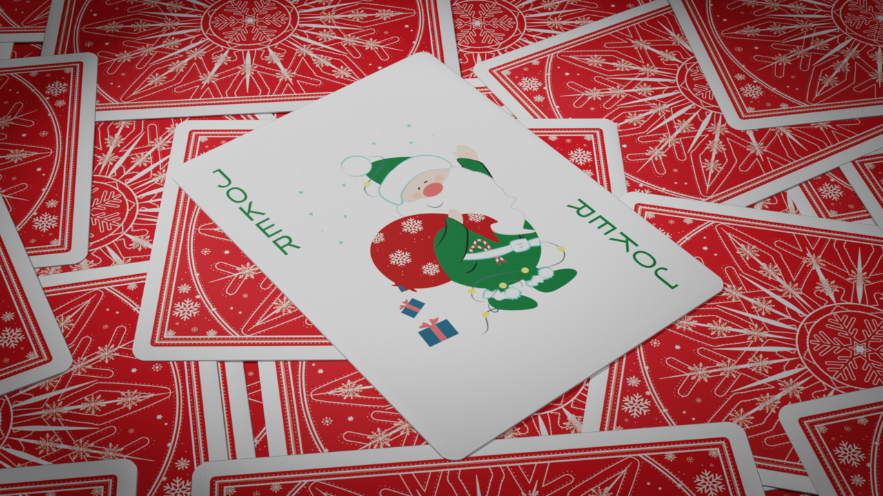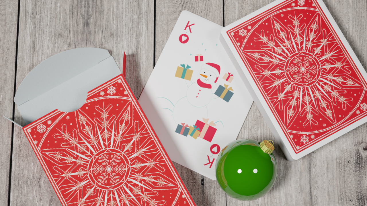 The Ornament Edition is our third Christmas deck, and the best one yet! The 100% custom artwork features reindeer, penguins, polar bears, snowmen, gifts, stockings, and more! Every single face is unique, with the suit pips being presented in ornament form! The Santa Jokers know if you've been naughty or nice, and the Red & White snowflake back design is sure to put you in the holiday spirit.