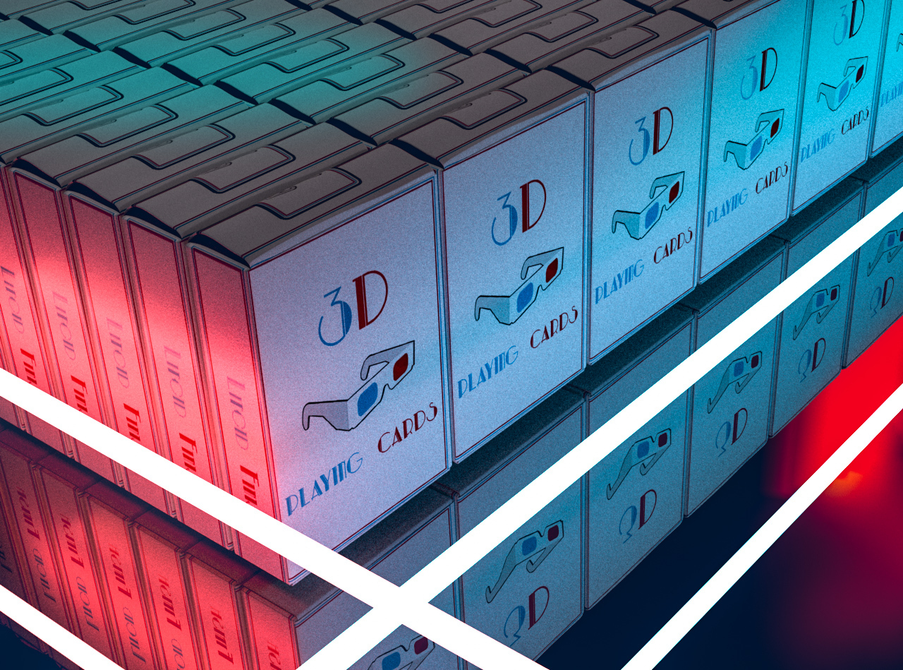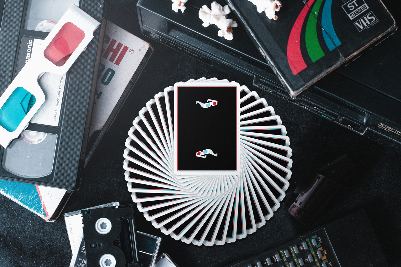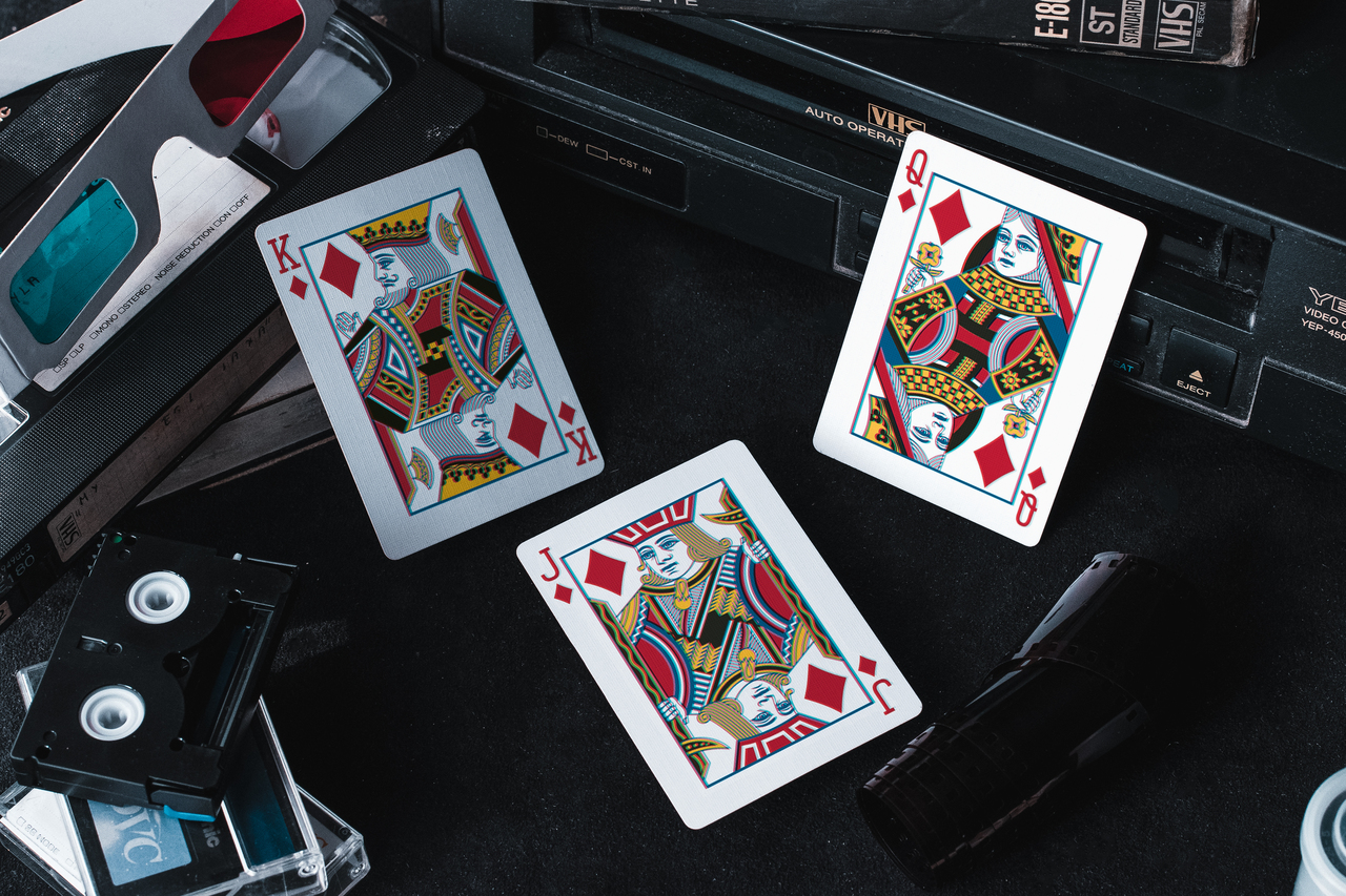 - 54 Custom Faces: Classic court and number cards reimagined with striking red and blue shadowing, producing a mesmerizing 3D depth effect reminiscent of vintage stereoscopic visuals.