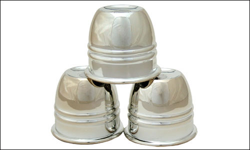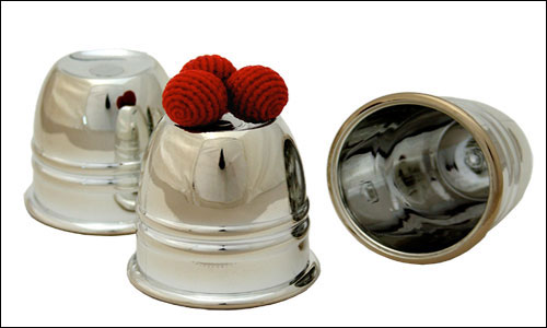 The Cups & Balls, a classic in magic, is now available in chrome plated plastic. You don't have to settle for plastic cups that look like a kid's toy! These are serious cups for the serious performer at a price that can't be beat!