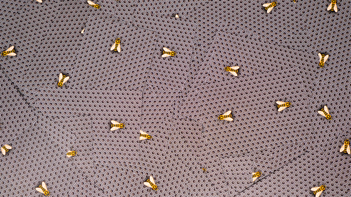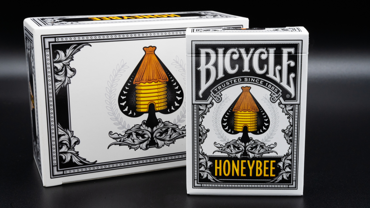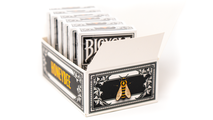 Designed by Randy Butterfield, Bicycle Honeybees feature the same beloved Honeycomb pattern as earlier decks. Our Honeybee mascot still walks on the backs but faces in a new direction for enhanced symmetry.