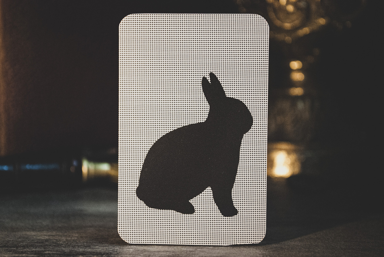 The Rabbit Cards are printed on specially sourced card. They are designed to be just the right thickness to handle well, but also let enough light through to allow the trick to work.