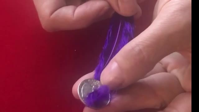 In front of the spectators eyes, a feather is used to penetrate right thru a quarter. it is clearly seen penetrating as it is pushed thru the coin. the feather can be seen protruding from the back side of the coin as it melts right thru. The complete penetration can be watched right till the last second. the coin can instantly be seen from front and back sides to show that the coin is solid and reveals no possible way for it to have penetrated.