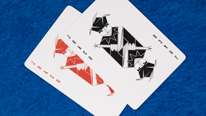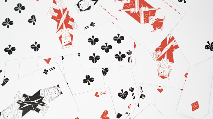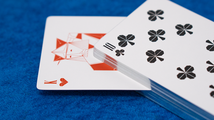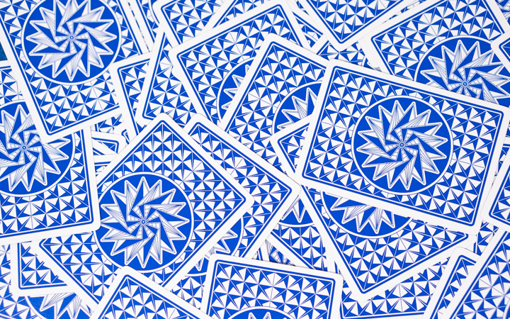 Everyone loves paper airplanes. They're probably the first piece of origami you ever made. The Bicycle Glider Back deck is a 100% custom deck of playing cards featuring origami-inspired artwork. The back design has paper gliders in an appealing geometric layout against a vibrant blue background. The traditional-looking back also contains a devious but easy-to-learn coded marking system that allows you to identify the suit and value of each card.