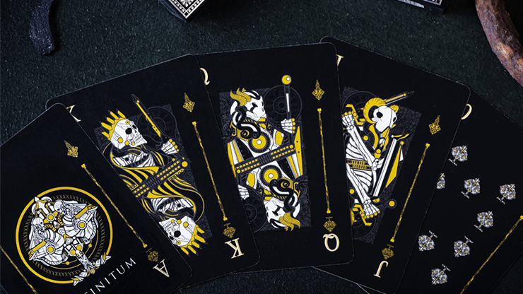 Turn Heads With Next-Level Luxury. With beautiful hand-drawn artwork on a midnight-black background and tuck box shielded in intricate silver and black foils, the Infinitum Cards stand out anywhere. Fully custom designs combine with traditional arrangements to make the perfect deck for any game. Eye-Catching Attention To Detail.