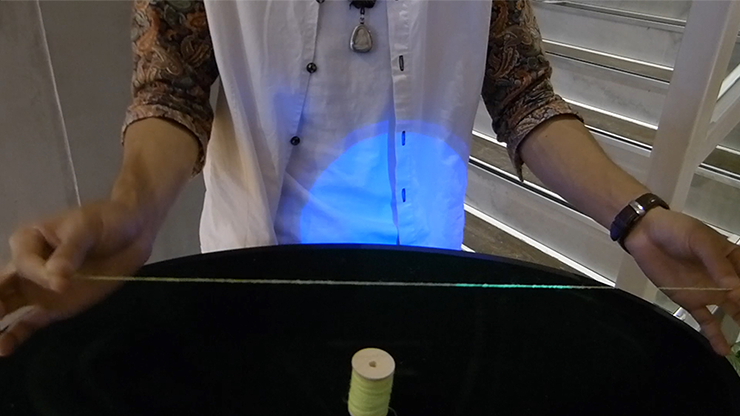 Effect: The magician pulls out a certain length of line from a roll of glowing thread. He then breaks it piece by piece, and kneads it into a ball. When it is unfolded it again, the broken line has been restored to a complete thread -- it's amazing! The technique is simple and neat. After performing, you can show everything to the audience for examination. OVER 500 FEET!!!
