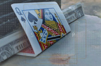 Borrow a bill from your spectator and place it behind the folding card. In a seconds the bill penetrates the card visually.