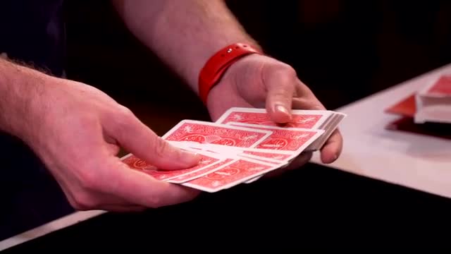The audience is allowed to thoroughly shuffle a deck of cards. The deck is turned face up and the audience is asked to memorize the order of the cards in a hilariously short amount of time. The deck is turned face down and the audience is asked to point to a handful of cards they remember as red or black. Those cards are fairly removed from the deck so that the audience knows there is no possibility of a switch. After the selection process, the deck is shown once again to be thoroughly mixed up. The selected cards are turned over, and the spectator is revealed to have successfully divined the color of all the cards.