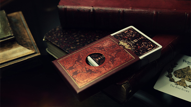 The Blue Crown has taken upon the task of restoring the artwork found in the old journal and reprinting this amazing deck of cards. Designed by Rudy Faber, and finalized by Edo Huang. Concept by Alex Mihailescu. The Blue Crown is proud to present its latest installment in their playing card line. Enter the Victorian Room.