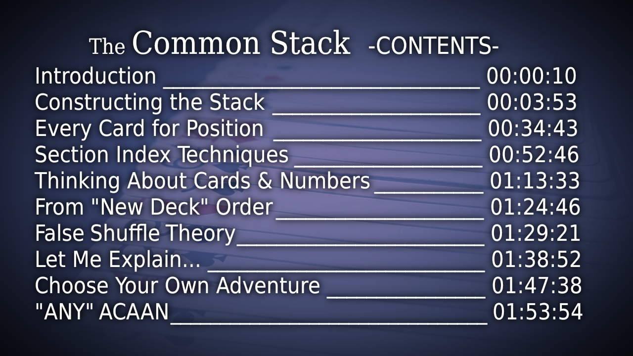 If you are just getting into memorized deck work, or if you are looking for another stack to add to your arsenal... try out The Common Stack and never get caught in a memory lapse again!