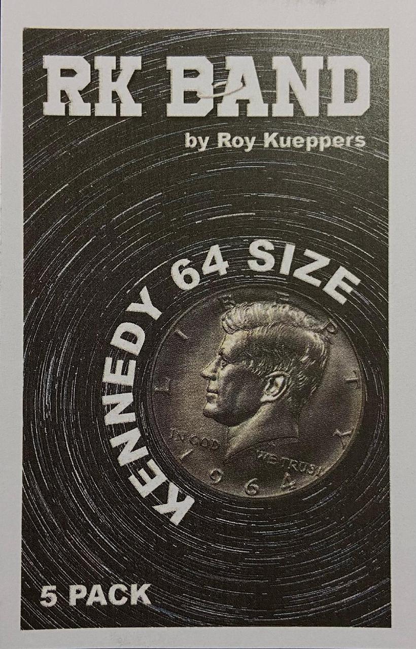 Each package contains 5 Bands. These Bands are the Medium size which will fit Roy Kueppers Flipper coins in these denominations....Kennedy 64, US Half Dollar, English Penny, and any other coin that is approx the same size as a US Half Dollar.