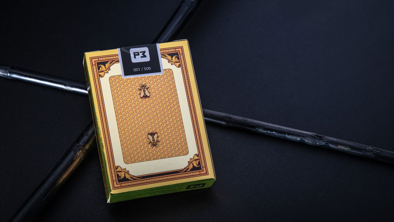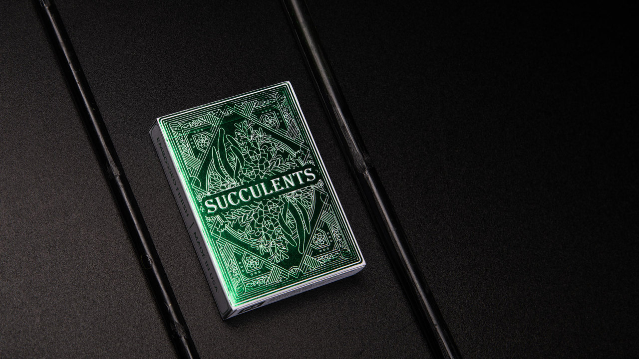 When you open the box you'll find one deck each of Ace Invaders, Succulents, Yellow Honeybee, Black Honeybee, Robots, and Tucán. The cards are printed by USPCC and feel as great as they look.