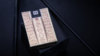 The luxurious 6-pack box is made from soft-touch black paper that has gold foil on the outside with silver foil on the inside, and a custom cutout in the lid to view the decks.