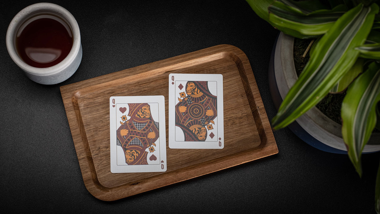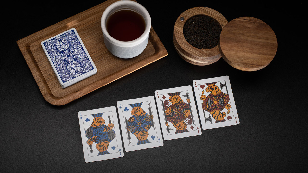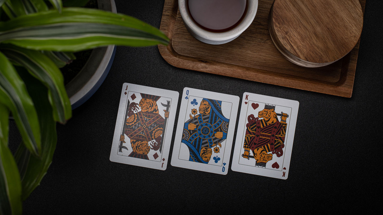 stylized tigers. (Tiger kings?) The royal cards are in full color with the hearts and diamonds clad