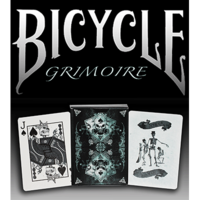 Using USPCC's legendary Bicycle card stock, The Grimoire Deck is comprised of twelve customized skeletal court cards, two custom jokers, a Grimoire double backer and a Grimoire/Mandolin double backer.